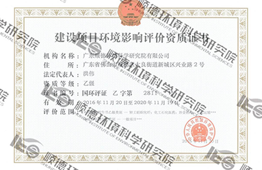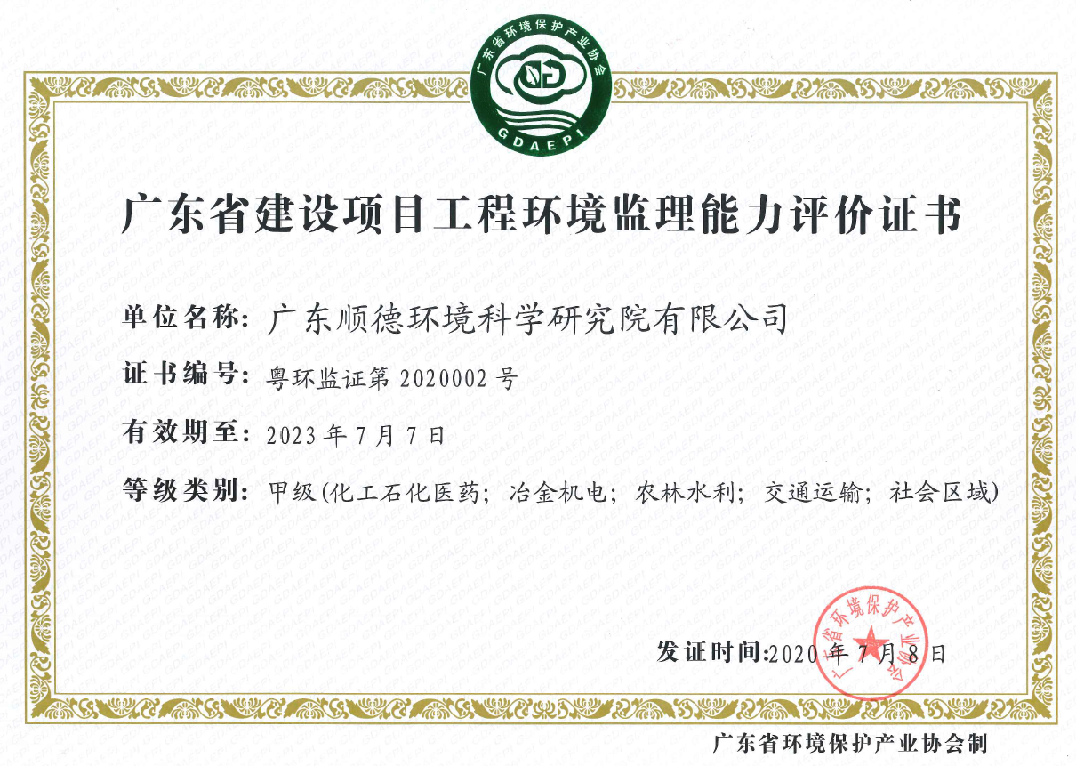 證書名稱:廣東省建設項目環境監理資格行業評定證書
